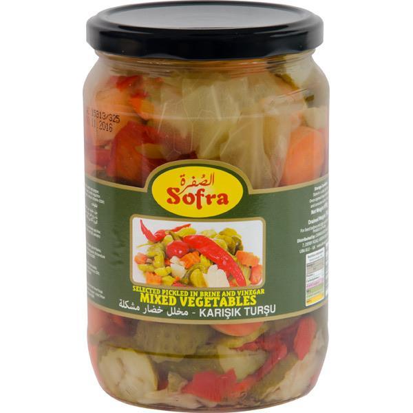 Ingredients: Cucumber, cauliflower, carrot, red pepper, green pepper, water, vinegar, Saltacdity regulator: citticadid (E330), firming agent: calcium chloride (E509).