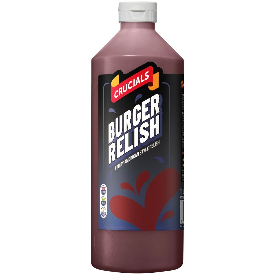 Crucials Burger Relish 1litre is backordered and will ship as soon as it is back in stock.