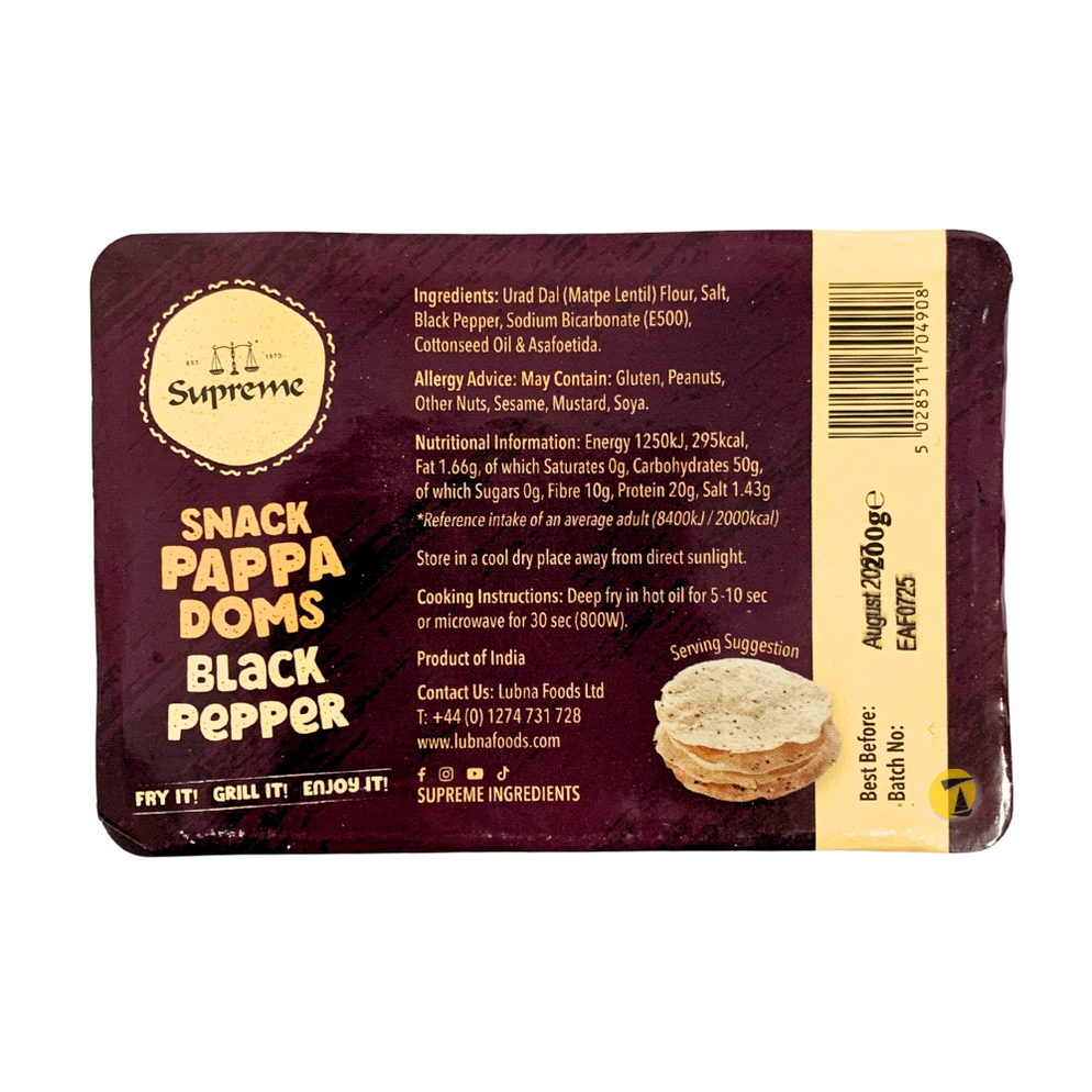 Supreme Mini Pappadoms Black Pepper 200g is backordered and will ship as soon as it is back in stock.